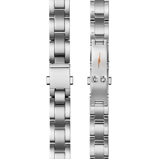 Bracelet: 18/13, Universal 3Link, Fold Over, PoSS Brushed Stainless Steel / Polished Stainless Steel