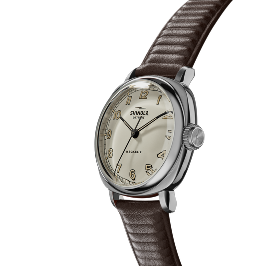 Shinola’s first manually wound mechanical movement, a tribute to the craftsmanship of sign painters and their timeless three-dimensional typography, often called ‘mechanics’. A celebration of joyful, analog moments—designed to be wound by hand, for a truly personal connection.
