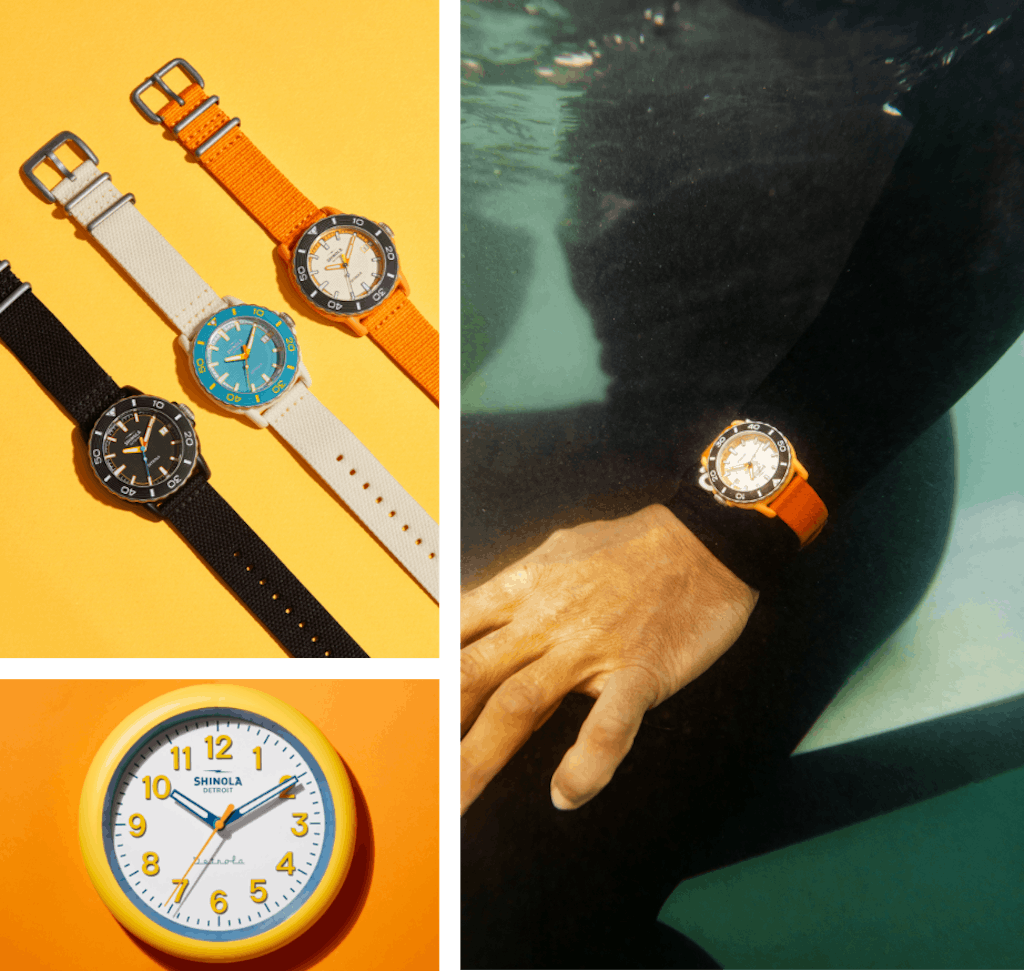 Shinola’s partners at #tide® ocean bound plastic pay the local beach communities fair and equitable wages to collect plastic on the beach. It’s then upcycled into plastics for injection molding and weaving—as seen on the Sea Creatures and Detrola clocks.