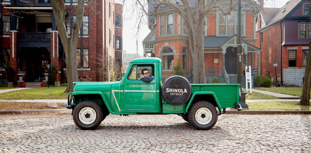 If you’re lucky, you’ll run into Fox in the basement of Shinola’s headquarters sometime. This is where the brand’s beloved 1961 Jeep Willys pickup is parked. The Emerald-colored classic resembles a grandfather’s ancient tool box. It’s weathered, robust, and capable. The latches may stick and the hinges may creak, but it’s as good as anything that’s coming out of today’s factories.